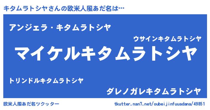 | 男性向けラノベタイトル風あだ名 | 『キタムラトシヤアートオンライン』 |