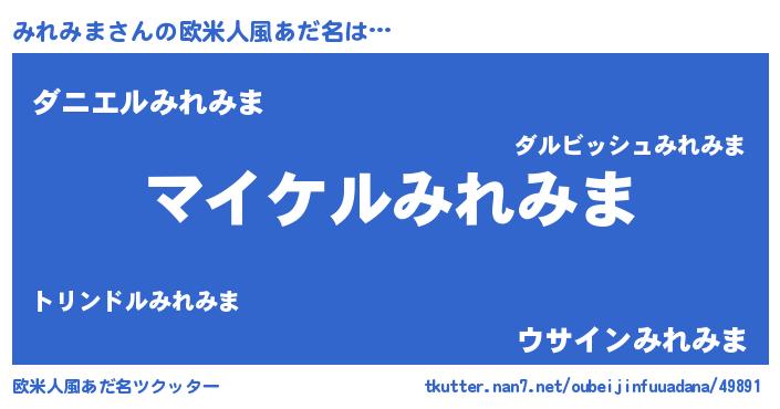 | 男性向けラノベタイトル風あだ名 | 『みれみまの憂鬱』 |