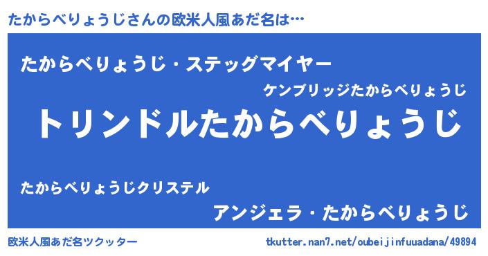 | 男性向けラノベタイトル風あだ名 | 『転生したらたからべりょうじだった件』 |
