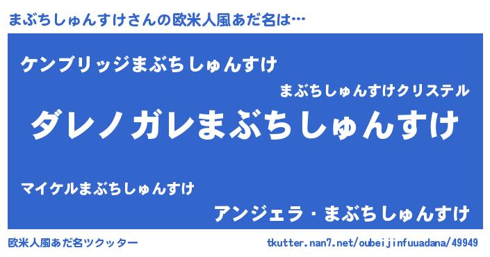 | 男性向けラノベタイトル風あだ名 | 『魔弾の王とまぶちしゅんすけ』 |