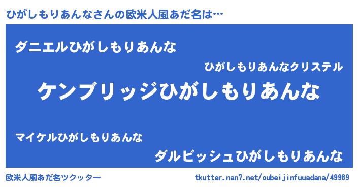 | 意味不明あだ名 | 『自称ひがしもりあんな』 |