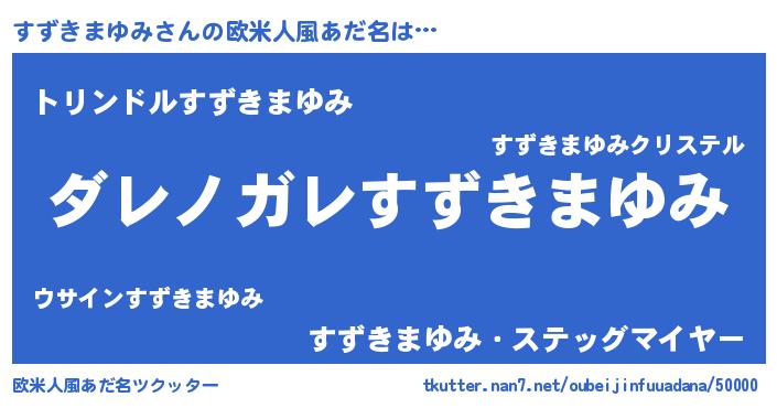 | 女子向けラノベタイトル風あだ名 | 『悪役すずきまゆみに転生したようですが、知った事ではありません』 |