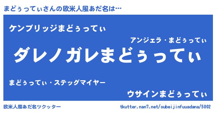 | 男性向けラノベタイトル風あだ名 | 『この素晴らしい世界にまどぅってぃを!』 |