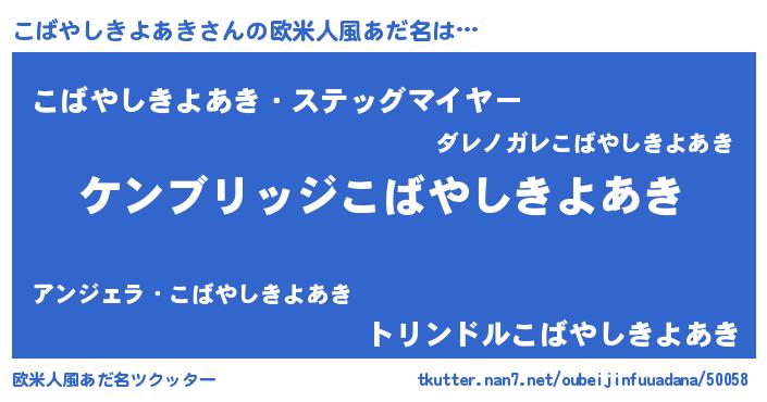 | 女子向けラノベタイトル風あだ名 | 『こばやしきよあきストレイドッグス』 |