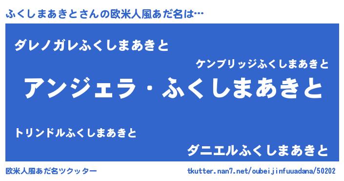 | ヘコむあだ名 | 『ふくもー』『ふくしまあきと(爆)』 |
