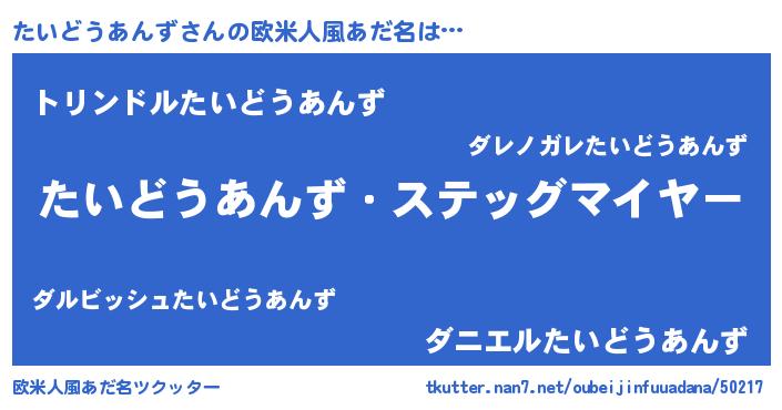 | ヘコむあだ名 | 『たいどうあんず(遠い目)』『たいっぺ』 |