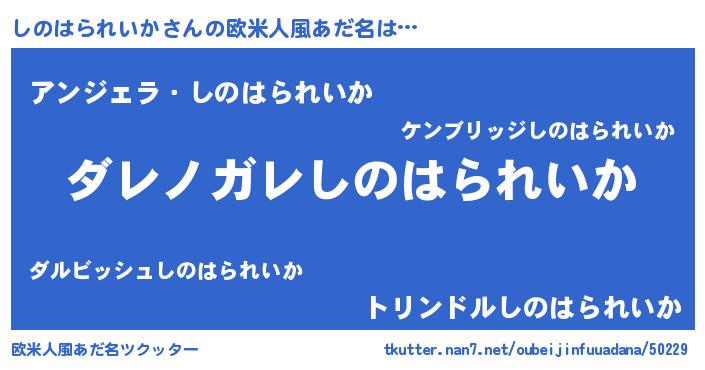 | 意味不明あだ名 | 『住所不定無職しのはられいか(86歳)』 |