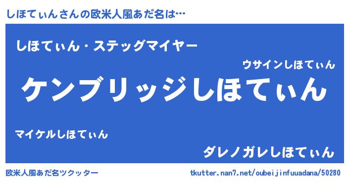 | 男性向けラノベタイトル風あだ名 | 『Re:しほてぃんから始める異世界生活』 |