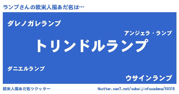 | 男性向けラノベタイトル風あだ名 | 『ランプ~年齢イコール彼女いない歴の魔法使い~』 |