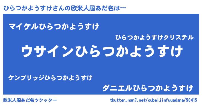 | 女子向けラノベタイトル風あだ名 | 『ひらつかようすけ様がみてる』 |