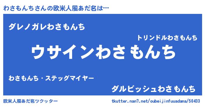 | 男性向けラノベタイトル風あだ名 | 『わさもんちの嫁は女の子じゃないと思った?』 |