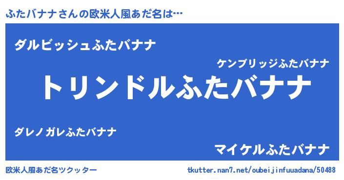| 男性向けラノベタイトル風あだ名 | 『ふたバナナ~年齢イコール彼女いない歴の魔法使い~』 |