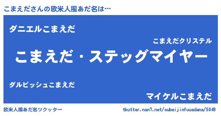 | 男性向けラノベタイトル風あだ名 | 『うちのこまえだが世界を掌握している!』 |