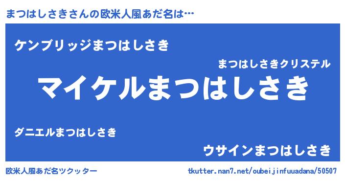 | 男性向けラノベタイトル風あだ名 | 『まつはしさきの憂鬱』 |