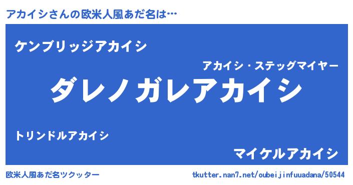| 意味不明あだ名 | 『住所不定無職アカイシ(47歳)』 |