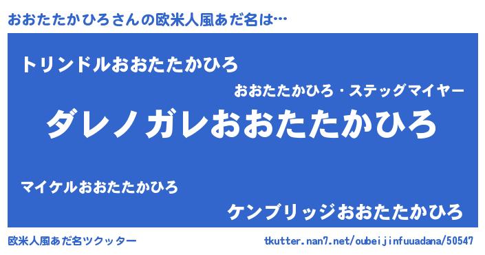 | 女子向けラノベタイトル風あだ名 | 『乙女ゲームの破滅フラグしかない悪役おおたたかひろに転生してしまった…』 |