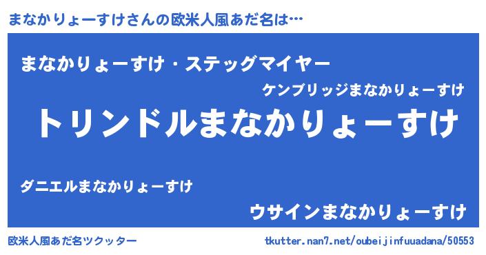 | 男性向けラノベタイトル風あだ名 | 『転生したらまなかりょーすけだった件』 |
