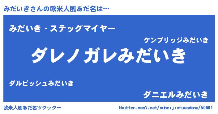 | 意味不明あだ名 | 『住所不定無職みだいき(53歳)』 |