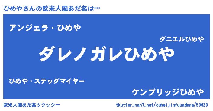 | 男性向けラノベタイトル風あだ名 | 『この素晴らしい世界にひめやを!』 |