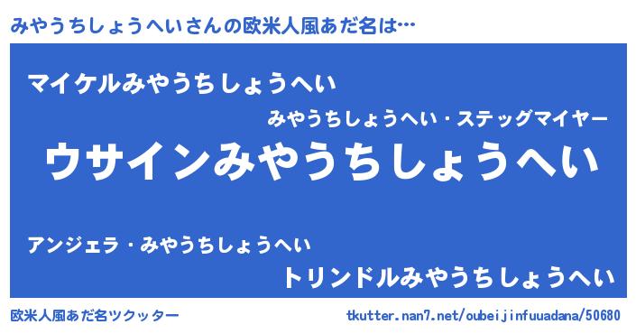 | 女子向けラノベタイトル風あだ名 | 『みやうちしょうへいの卵を拾いまして』 |