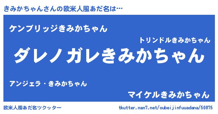 男性向けラノベタイトル風あだ名 | 『この素晴らしい世界にきみかちゃんを!』 |