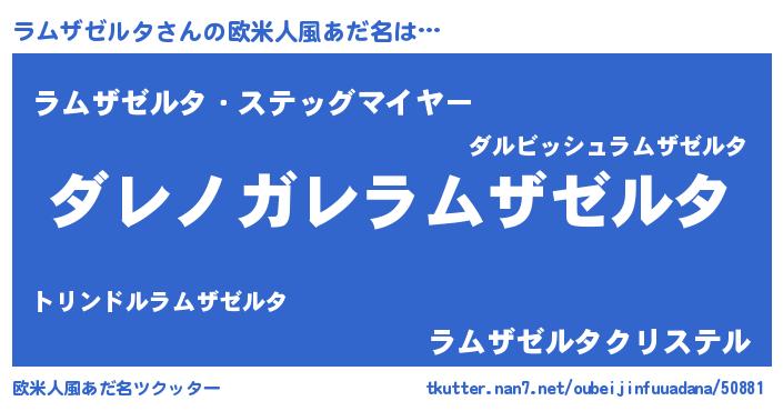 | 意味不明あだ名 | 『住所不定無職ラムザゼルタ(8歳)』 |
