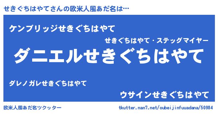 | 意味不明あだ名 | 『眠気覚ましガムせきぐちはやて味』 |