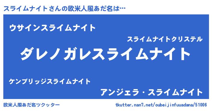 | 意味不明あだ名 | 『住所不定無職スライムナイト(13歳)』 |