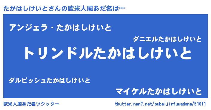 | 男性向けラノベタイトル風あだ名 | 『タカハシケイトスレイヤー』 |