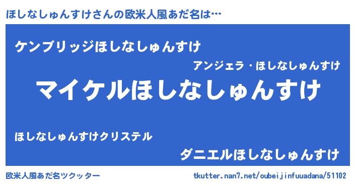 | 男性向けラノベタイトル風あだ名 | 『ほしなしゅんすけの憂鬱』 |