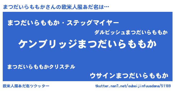 | 女子向けラノベタイトル風あだ名 | 『まつだいらももかストレイドッグス』 |