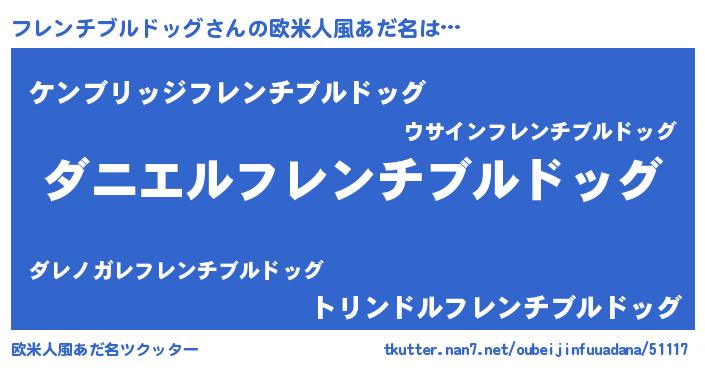 | 男性向けラノベタイトル風あだ名 | 『ノーゲーム・ノーフレンチブルドッグ』 |