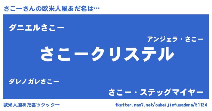 | 女子向けラノベタイトル風あだ名 | 『さこーの婚約者』『死神さこーの再婚』 |