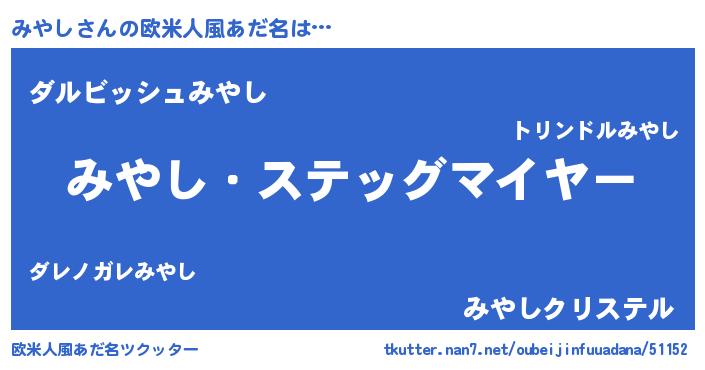 | 男性向けラノベタイトル風あだ名 | 『緋弾のミヤシ』『ミヤシスレイヤー』 |