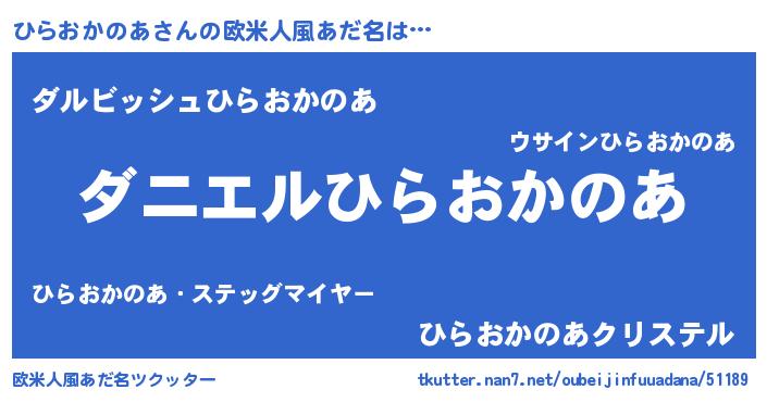 | ヘコむあだ名 | 『ひらおかのあ(遠い目)』『なまこ酢』 |