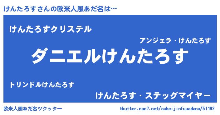 | 男性向けラノベタイトル風あだ名 | 『おまえをオタクにしてやるから、俺をけんたろすにしてくれ! 』 |