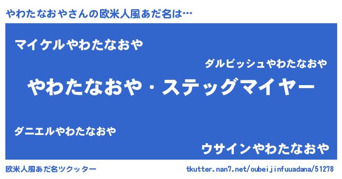 | 胡散臭い通販商品みたいなあだ名 | 『億万長者になれるブレスレット…その名も「やわたなおや」』 |