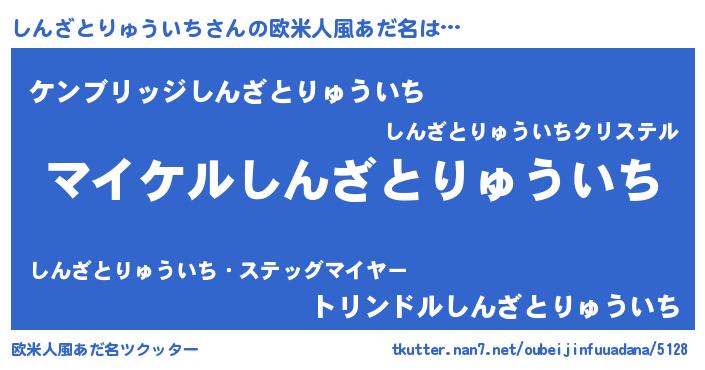| 男性向けラノベタイトル風あだ名 | 『しんざとりゅういちの憂鬱』 |