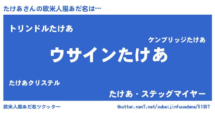 | ヒーロー風カッコイイあだ名 | 『炎刃騎士タケ』『サイバー戦士タケア』 |