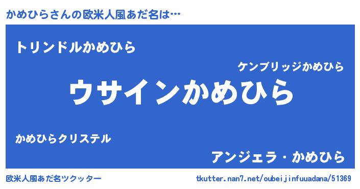 | 男性向けラノベタイトル風あだ名 | 『ダンジョンにかめひらを求めるのは間違っているだろうか』 |