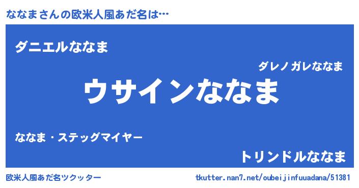 | 男性向けラノベタイトル風あだ名 | 『ななまの嫁は女の子じゃないと思った?』 |