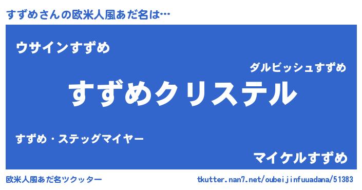 | ファンタジー風あだ名 | 『エターナルスズメー』『スズフェル』 |