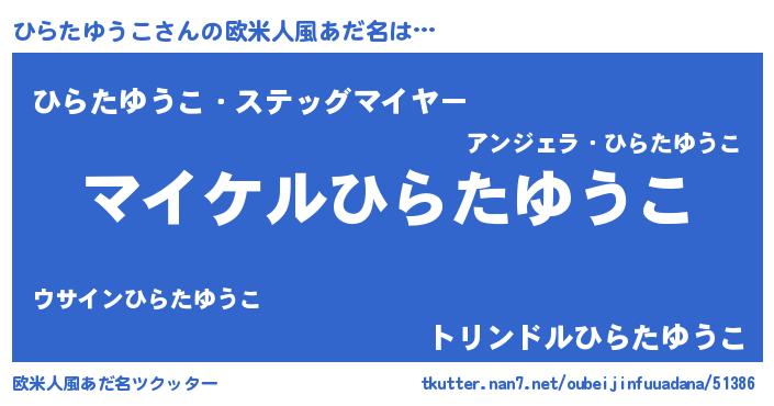 | ヒーロー風カッコイイあだ名 | 『スーパーヒラタユウコ』『天弓騎士ヒラ』 |