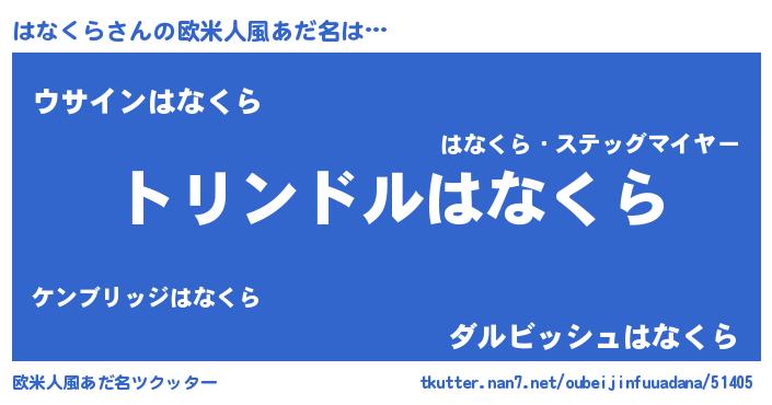 | 男性向けラノベタイトル風あだ名 | 『転生したらはなくらだった件』 |