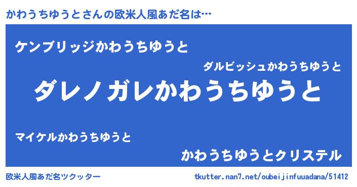 | 男性向けラノベタイトル風あだ名 | 『この素晴らしい世界にかわうちゆうとを!』 |
