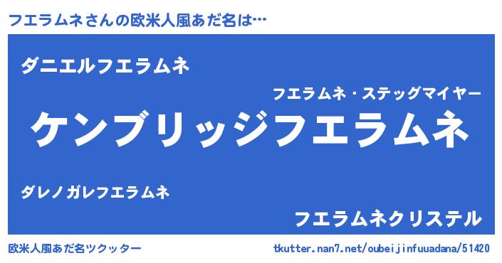 | 男性向けラノベタイトル風あだ名 | 『Re:フエラムネから始める異世界生活』 |