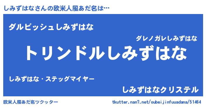 | 料理風あだ名 | 『しみずはなごはん』 |