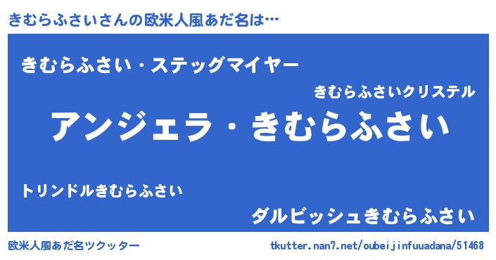 | 男性向けラノベタイトル風あだ名 | 『きむらふさいに滅ぼされるだけの簡単なお仕事です』 |