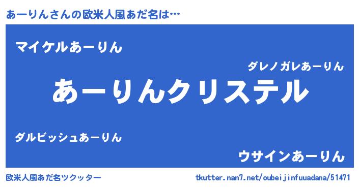 | 意味不明あだ名 | 『あーりんフォーエバー』 |