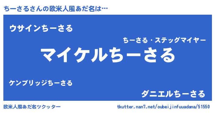 | 男性向けラノベタイトル風あだ名 | 『ちーさるの憂鬱』 |